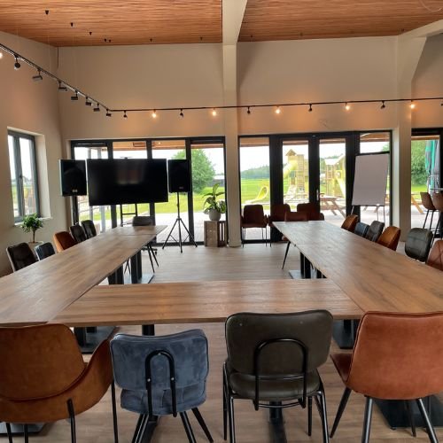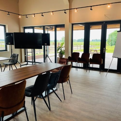 Onze duurzame vergaderruimte is sfeervol en huiselijk ingericht, met veel daglicht en directe toegang tot het terras. Ideaal voor heidagen, strategiesessies of creatieve brainstorms. De rust van de omgeving helpt om dieper te denken, beter te luisteren en écht in gesprek te gaan. Buiten vergaderen behoort ook tot de mogelijkheden, net als een wandeling langs het prachtige bosmeer om het hoofd leeg te maken.